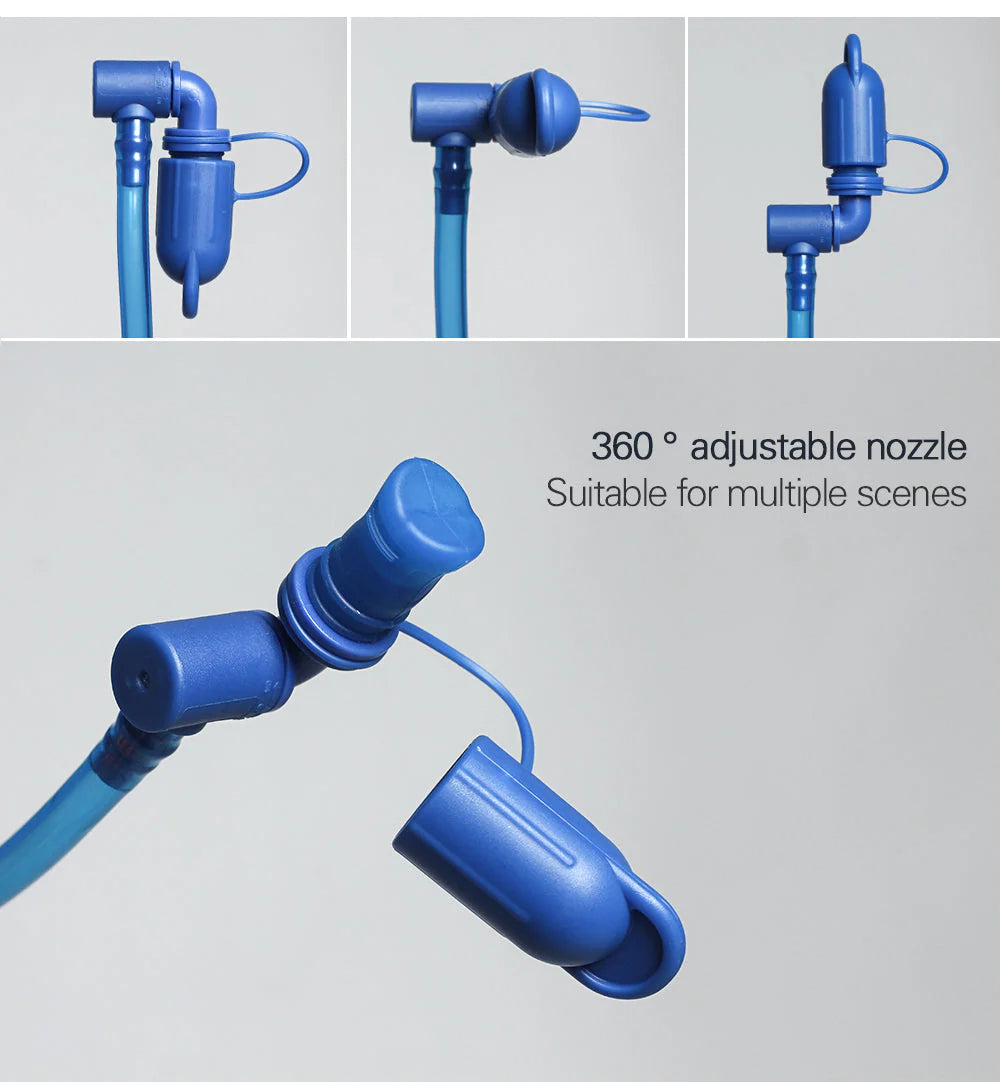 - Boca con bloqueo automático: vejiga de hidratación con válvula de encendido y apagado. La válvula de apagado automático evita fugas cuando se desconecta el tubo.